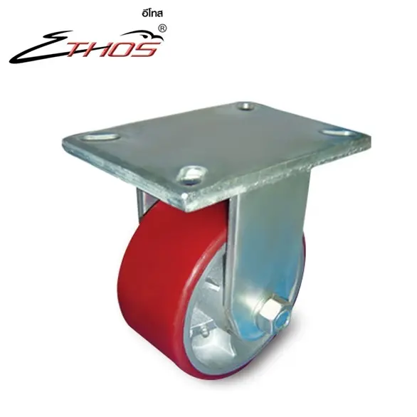 980 MUZ SERIES ลูกล้อพียู สีแดง ชนิด แป้นตาย ขนาด 6″ – 12″ แกนเหล็กหล่อพียู พร้อม ลูกปืนภายใน Roller Bearing รับน้ำหนักได้ 1,000 – 1,636 กก./ลูก ทนอุณหภูมิได้ -40°C ถึง +60°C โครงเหล็กขาเชื่อม ชุบซิงค์ เหมาะสำหรับงานอุตสาหกรรม หนัก