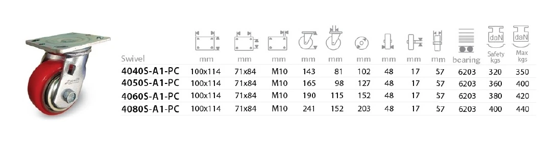 ขนาดของล้อ : มี 4 ขนาด ( 4 นิ้ว ถึง 8 นิ้ว)