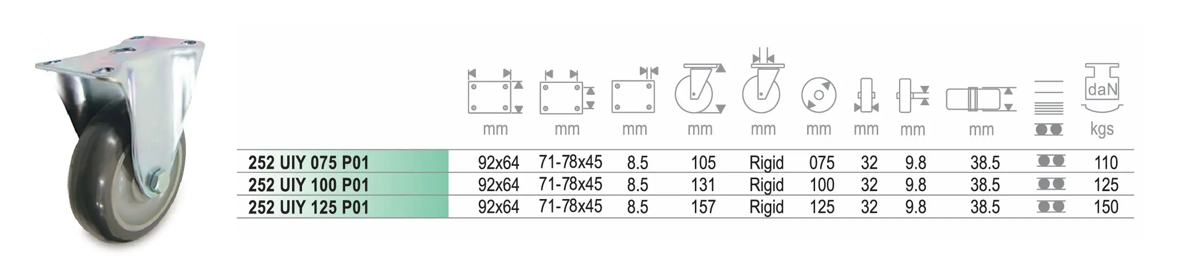 ลูกล้อพียู สีเทา ชนิด แป้นตาย ขนาด 3″- 5″