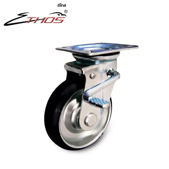ลูกล้อยางดำ Elastic Rubber ขาปั๊ม ชนิด แป้นหมุนมีเบรค ขนาด 3’’- 8″