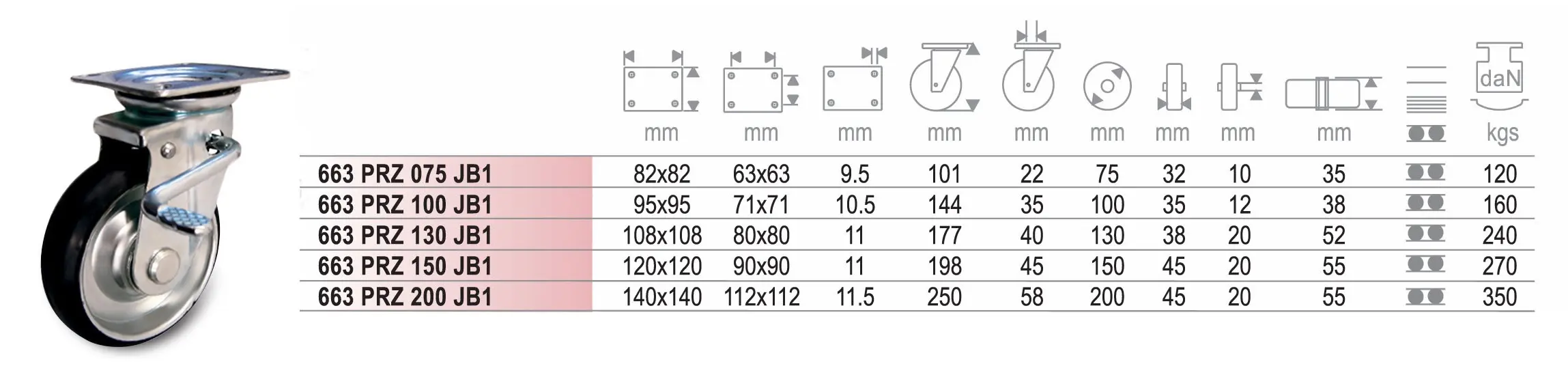 ลูกล้อยางดำ PRZ แป้นหมุนมีเบรค