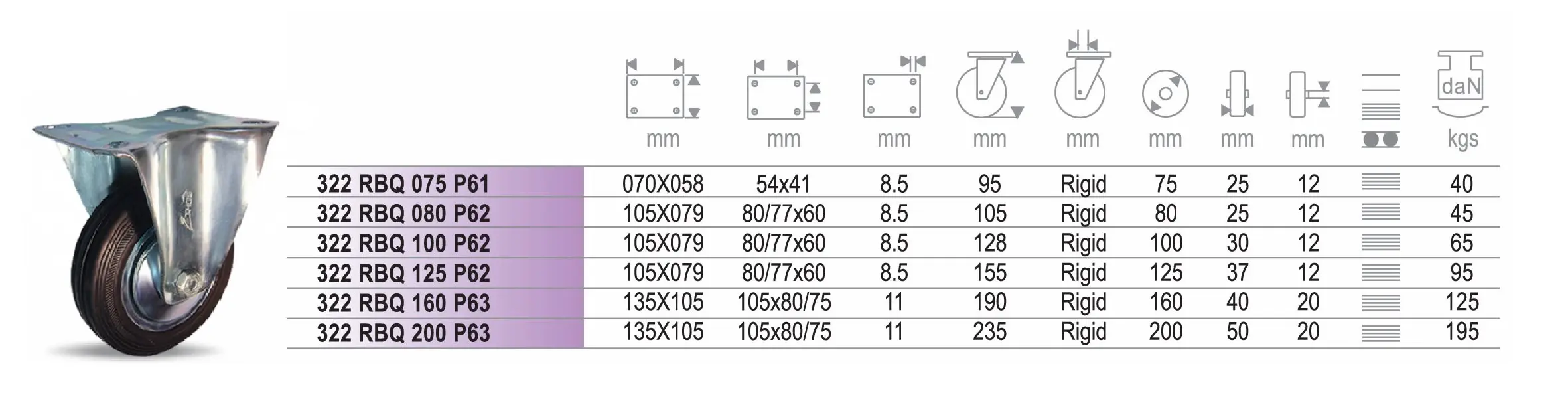 ลูกล้อยางสีดำ ชนิด แป้นตาย ขนาด 3″- 8″