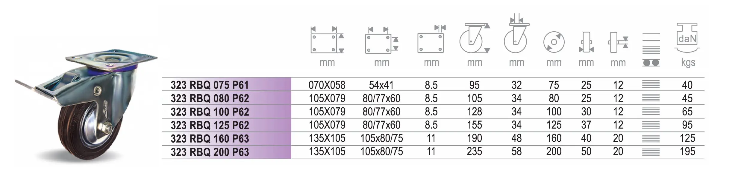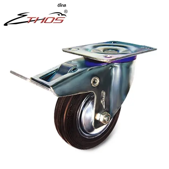 ลูกล้อยางสีดำ ชนิด แป้นหมุนมีเบรค ขนาด 3″- 8″