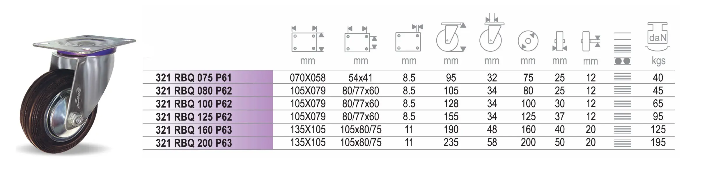 ลูกล้อยางสีดำ ชนิด แป้นหมุน ขนาด 3″- 8″