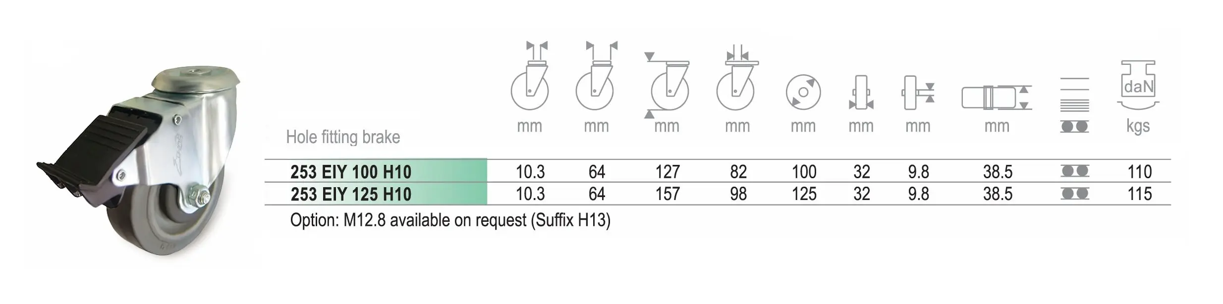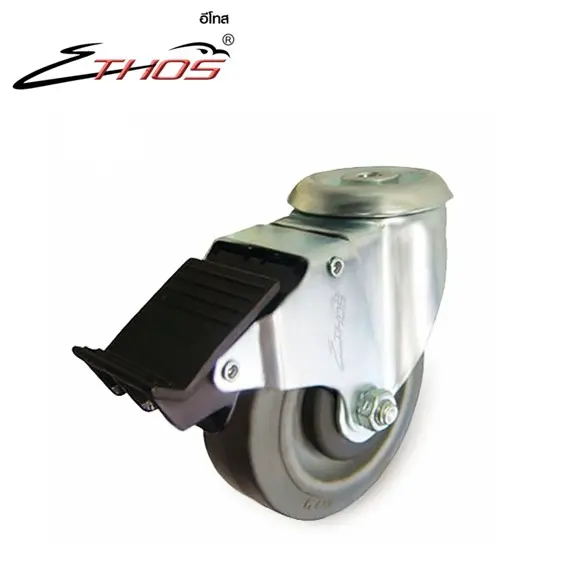 ลูกล้อยางสีเทา ลดเสียงไม่ทำให้พื้นเป็นรอย ชนิด Hole Fitting Swivel Brake ขนาด 4″- 5″