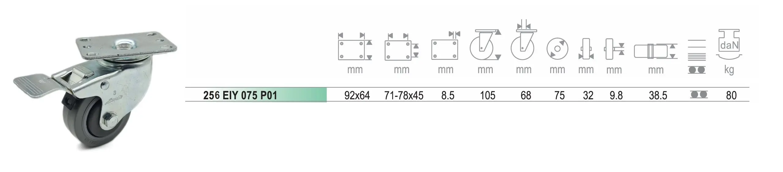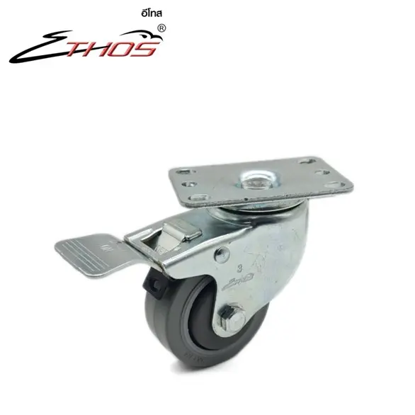 ลูกล้อยางสีเทา ลดเสียงไม่ทำให้พื้นเป็นรอย ชนิด แป้นหมุนมีเบรค ขนาด 4″- 5″