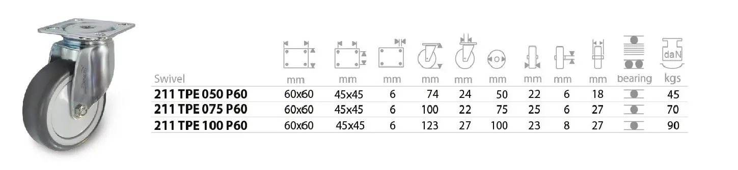 ลูกล้อยางเทา ชนิด แป้นหมุน ขนาด 2’’- 4”