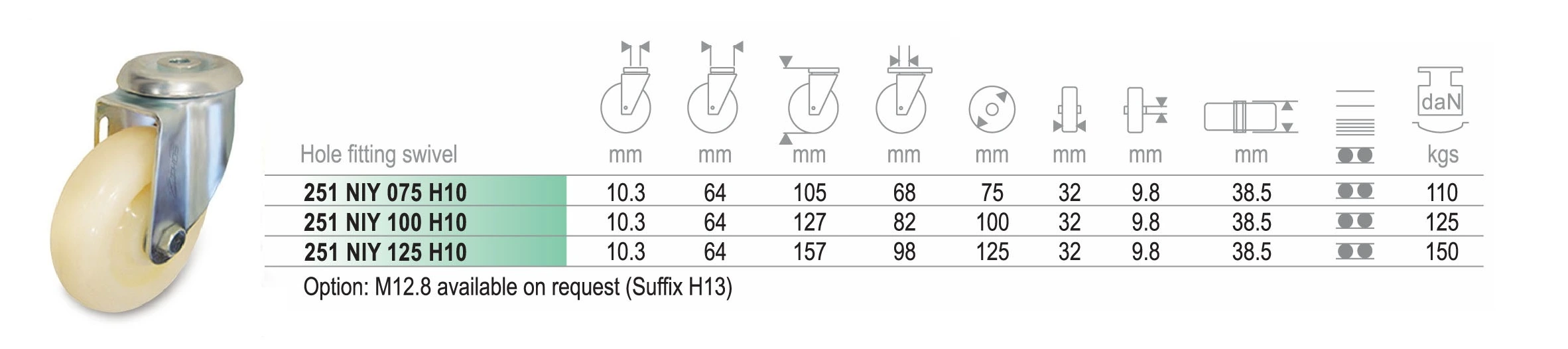 ลูกล้อไนล่อน NIY ขาแบบรู หมุนได้