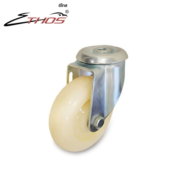 ลูกล้อไนล่อน สีขาว ขาแบบรู หมุนได้ ขนาด 3″-5″