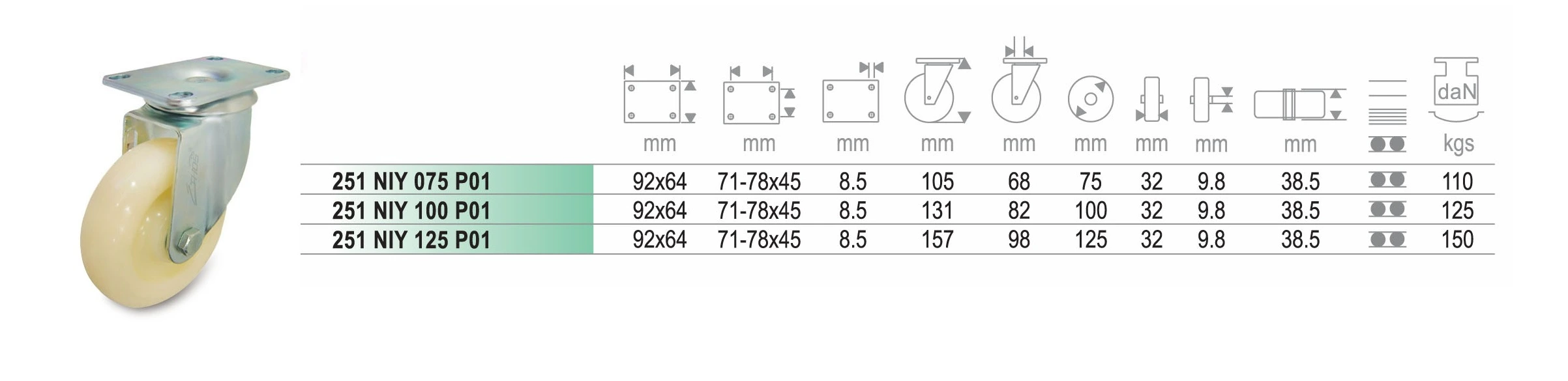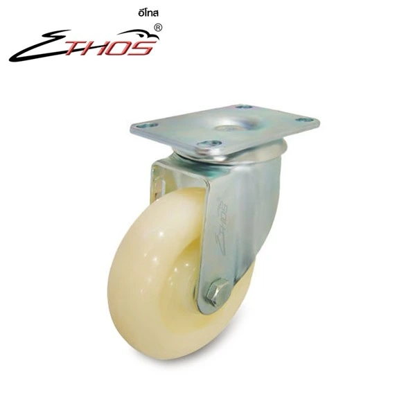 ลูกล้อไนล่อน สีขาว ชนิด แป้นหมุน ขนาด 4″- 5″