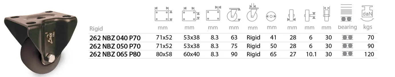 ลูกล้อ ไนล่อน สีดำ NBZ แป้นตาย