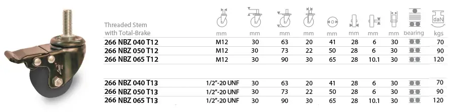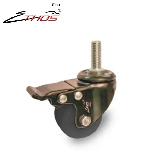 ลูกล้อ ไนล่อน สีดำ ชนิด แป้นหมุนมีเบรค ขนาด 1.6″- 2.6″