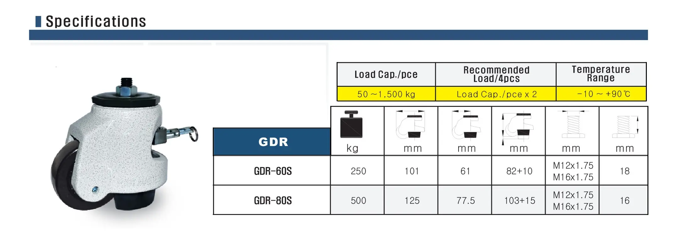 ลูกล้อพร้อมขาปรับระดับ แบบรูร้อยน็อตมีสลัก ขนาด 60-80mm