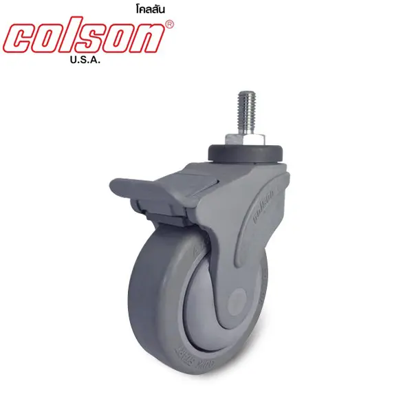 ลูกล้อยางสีเทา STO เกลียวหมุนมีเบรค