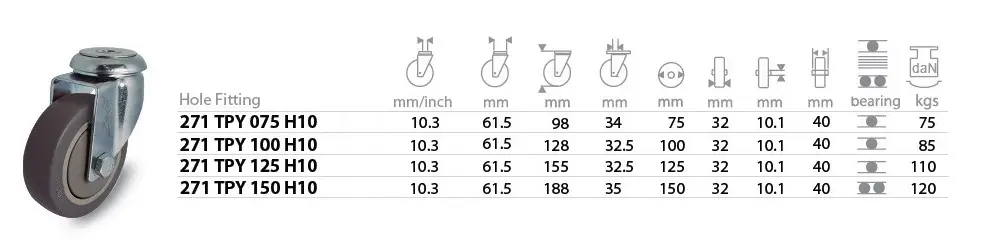 ลูกล้อยางเทา TPY ขารู หมุน H10