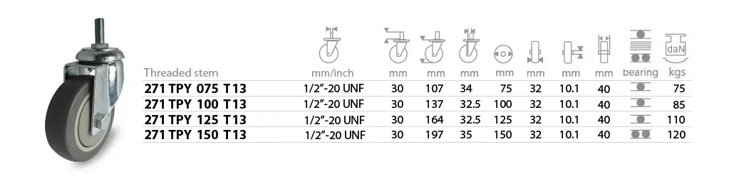 ลูกล้อยางสีเทา ลดเสียงไม่ทำให้พื้นเป็นรอย ชนิด เกลียวหมุน ขนาด 3″- 6″