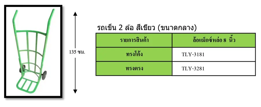 รถเข็น 2 ล้อ สีเขียว (ขนาดกลาง) สูง 135 ซม.