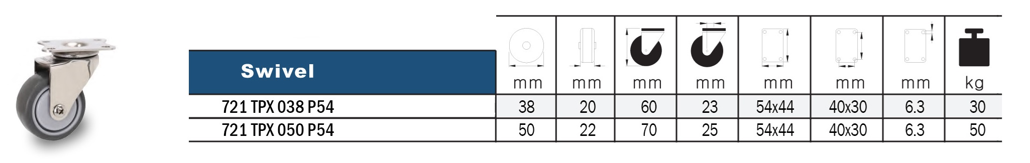 การรับน้ำหนัก : 30 – 50 กก./ล้อ (ขึ้นอยู่กับขนาดของล้อ)