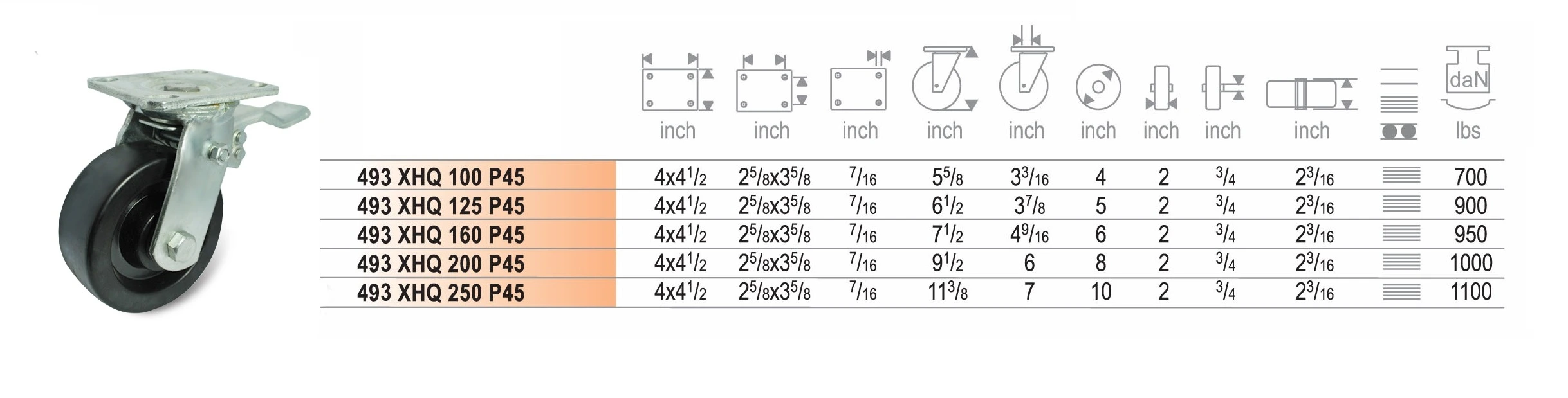 ลูกล้อทนความร้อน XHQ แป้นหมุนมีเบรก