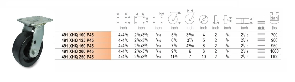 การรับน้ำหนัก : 300 – 500 กก./ล้อ (ขึ้นอยู่กับขนาดของล้อ)