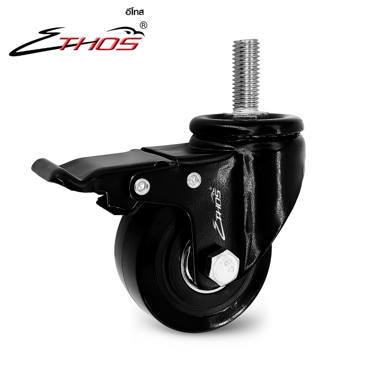 ลูกล้อไนล่อนสีดำ NBZ เกลียวหมุนมีเบรค