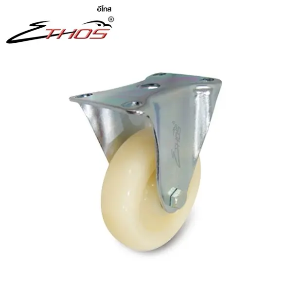 ลูกล้อไนล่อน สีขาว ชนิด แป้นตาย ขนาด 3″- 5″