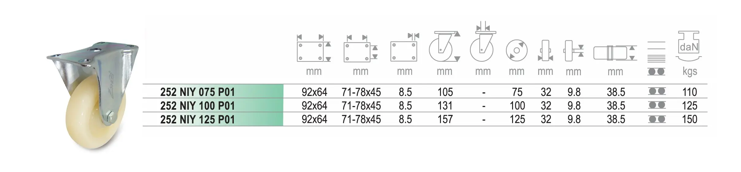ลูกล้อไนล่อน NIY แป้นตาย
