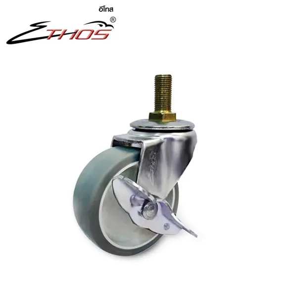ลูกล้อยางสีเทา ชนิด แกนเกลียวหมุนมีเบรค ขนาด 1.5’’- 3’’