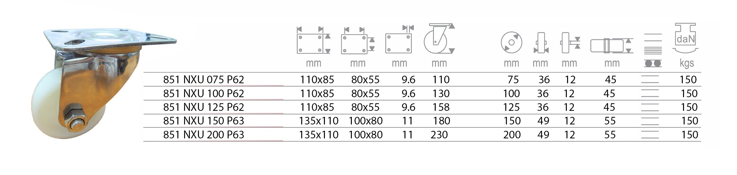 วัสดุของล้อ : ไนลอน (Nylon)