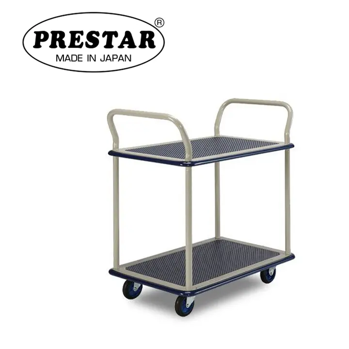 รถเข็นพื้นเหล็ก 2 ชั้น มือจับเข็น 2 ด้าน รองรับน้ำหนักได้ถึง 150 กิโลกรัม โครงสร้างแข็งแรง พื้นเคลือบยางกันลื่น พร้อมขอบยางกันชนรอบคัน