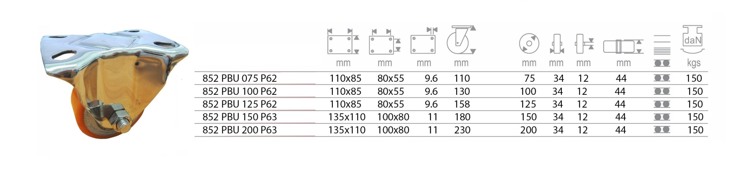 การรับน้ำหนัก : 150 กก./ล้อ