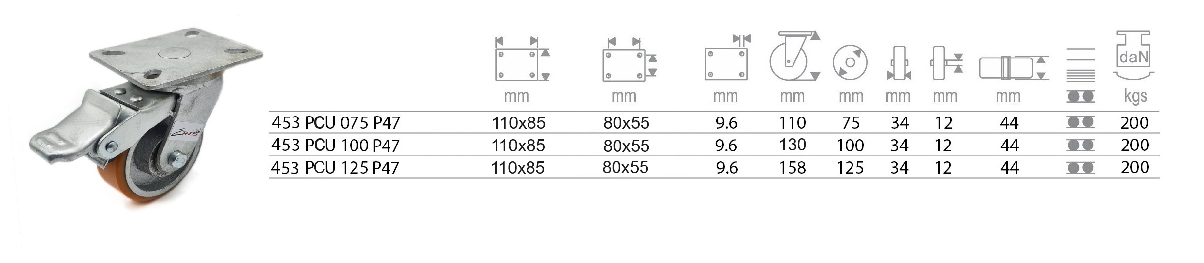 การรับน้ำหนัก : 200 กก./ล้อ