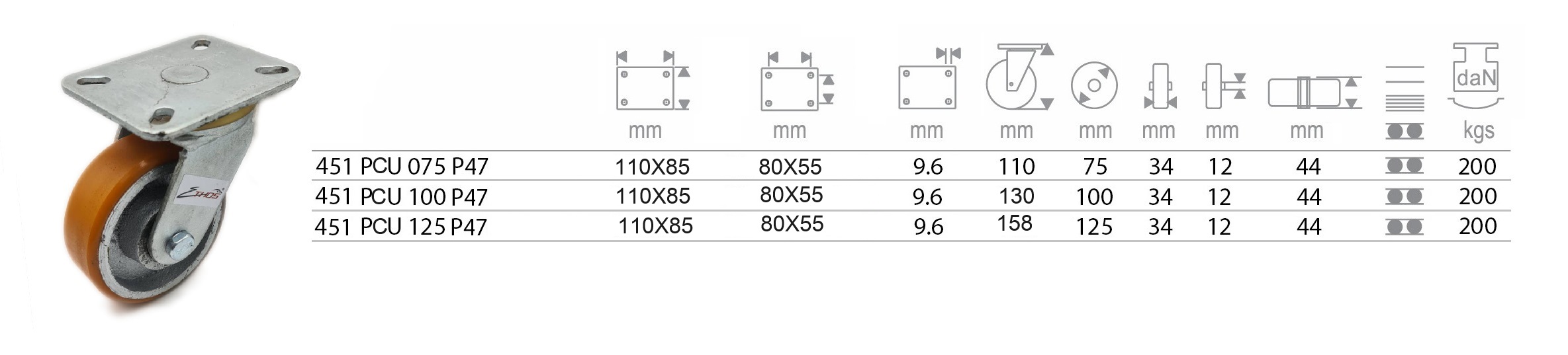วัสดุล้อ (หน้าสัมผัส) : โพลียูรีเทน (Polyurethane)