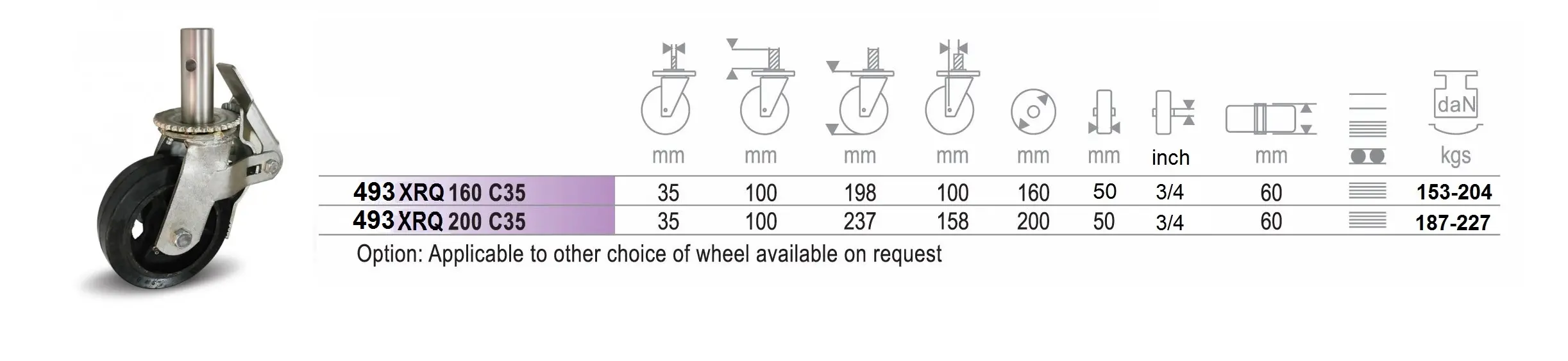 การรับน้ำหนัก : 150 – 220 กก./ล้อ (ขึ้นอยู่กับขนาดของล้อ)