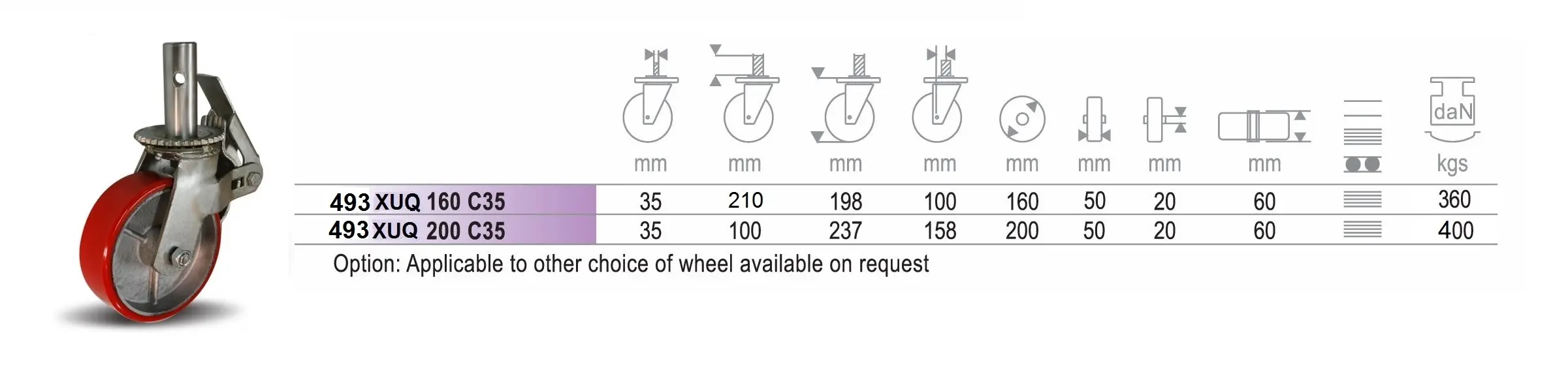 ลูกล้อพียูสีแดง ชนิด นั่งร้าน ขนาด 6’’- 8″